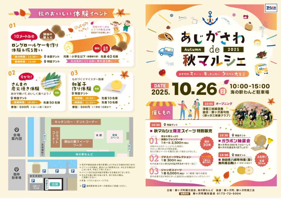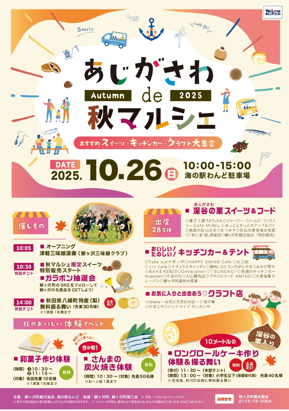 「あじがさわde秋マルシェ」が10月26日(日)海の駅わんど駐車場で開催されます。